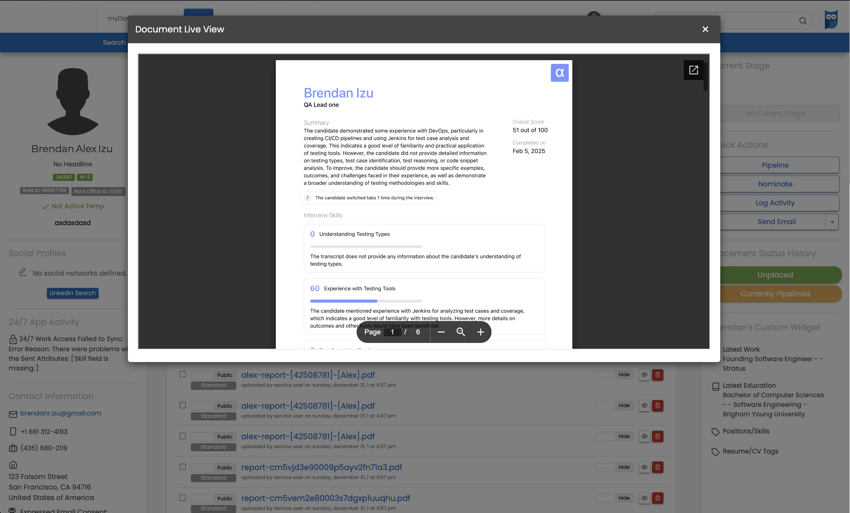 With this integration, AviontéBOLD customers can now automate live video interviews, phone screens, scheduling, and more. Today, Alex can: