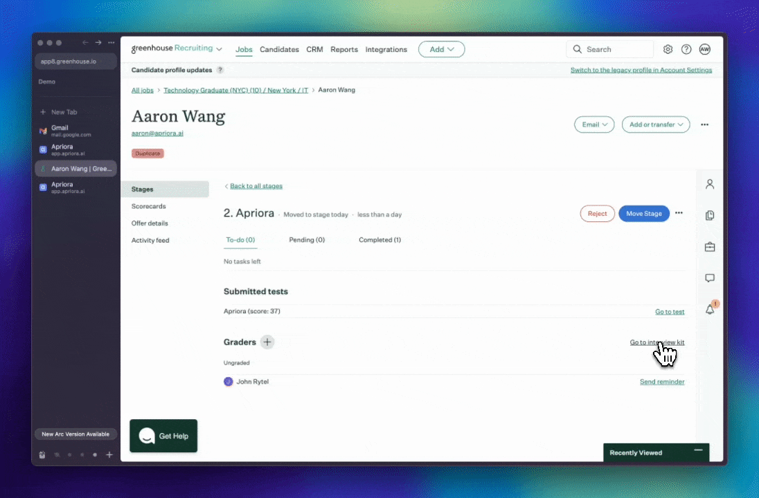 Check out the video below to see a video walkthrough of our Greenhouse integration.